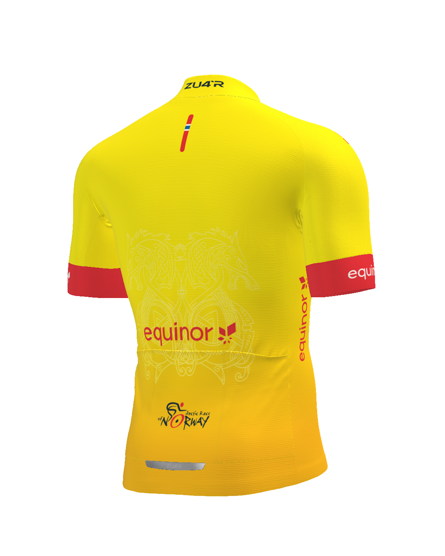 Gul og oransje Midnattssoltrøye, sponset av Equinor