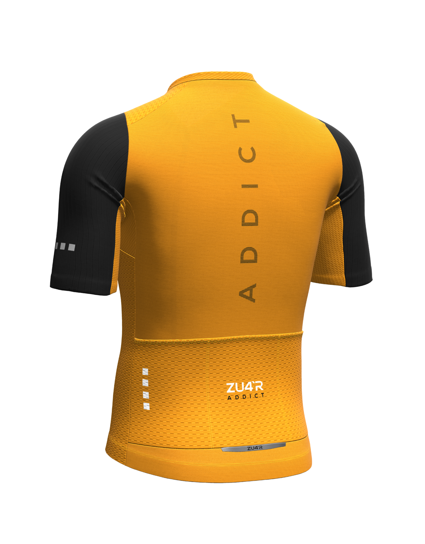 Addict - Aero trøye er laget av de mest sofistikerte MITI -stoffene, og det stramme stoffet og mellomlange ermer er valgt med det formål å lede vinden riktig for høyere hastighet på sykkelen.