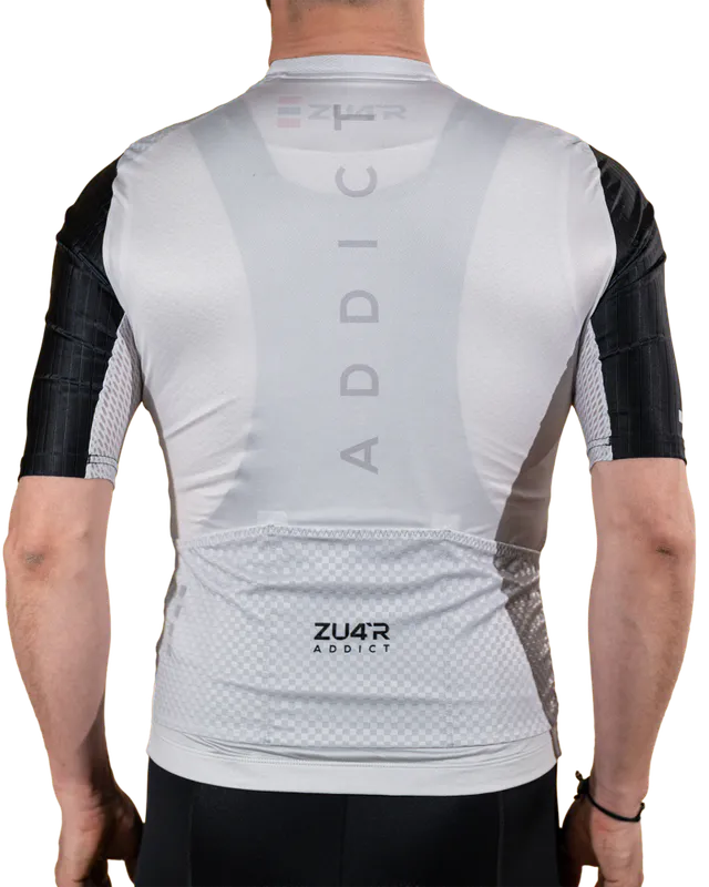 Addict Platinum - Aero trøye er laget av de mest sofistikerte MITI -stoffene, og det stramme stoffet og mellomlange ermer er valgt med det formål å lede vinden riktig for høyere hastighet på sykkelen.